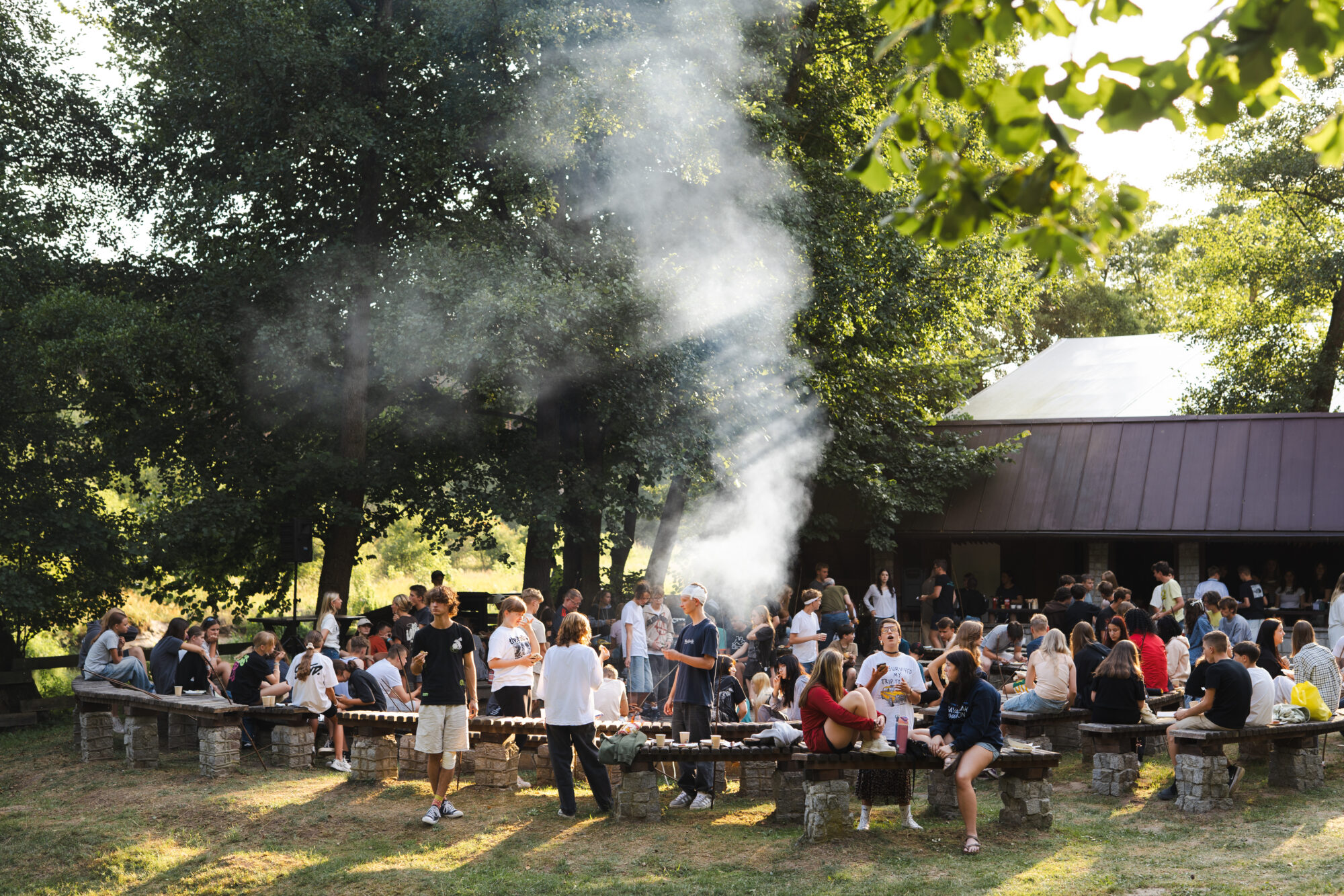 Chwile nad rzeką, na plaży czy przy ognisku, wieczory integracyjne i konkursy drużynowe sprzyjają budowaniu przyjaźni i współpracy. Aktywnie wypoczywamy na ściance wspinaczkowej, zipline i siłowni na świeżym powietrzu. Spędzamy czas w kawiarni, przy dobrej muzyce.